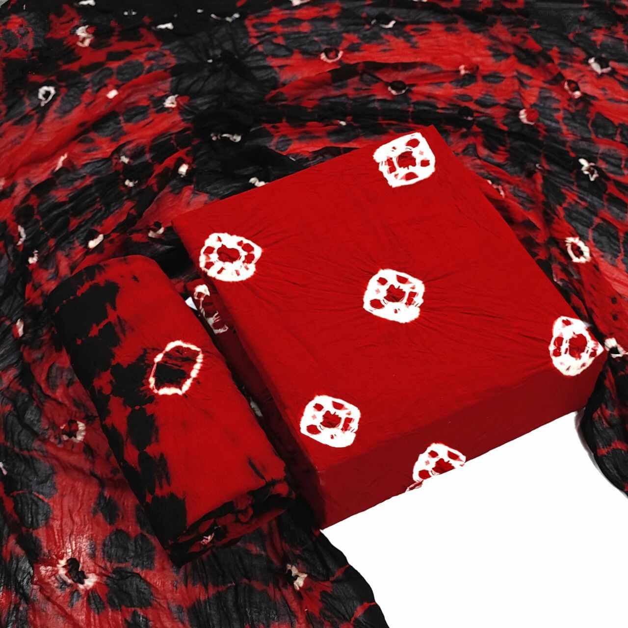 Name : | HEER RED Pure Rayon Bandhni Dress Materail |