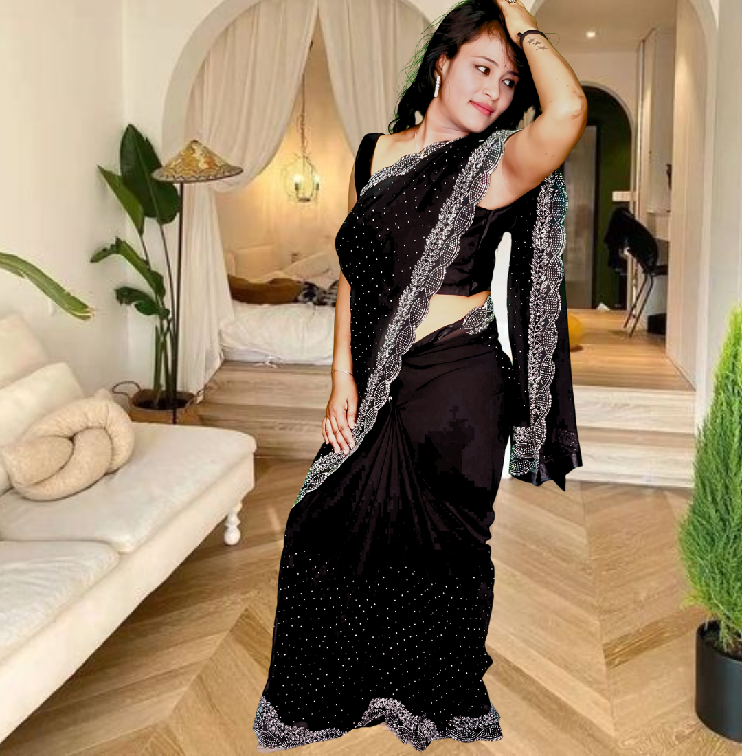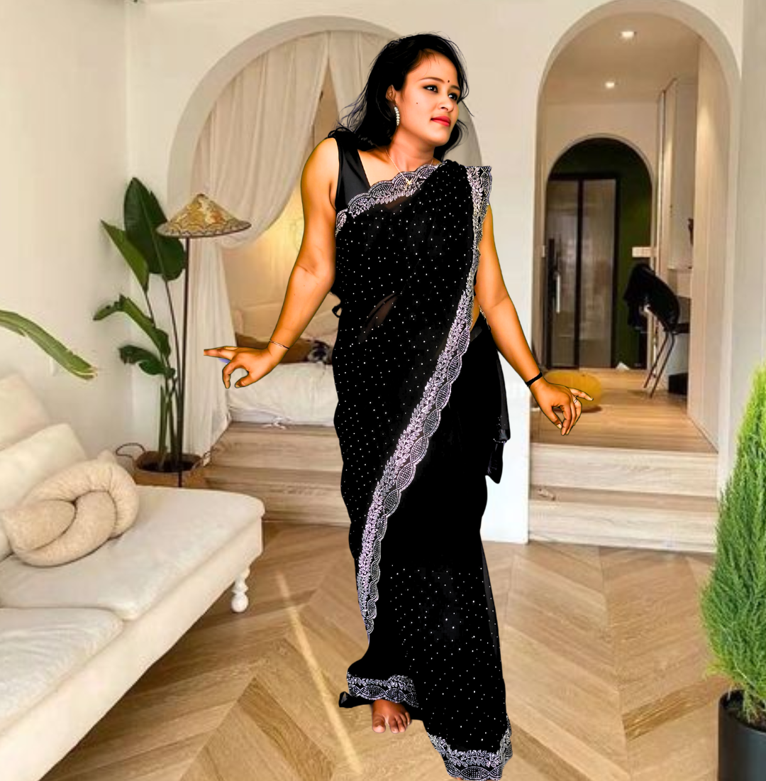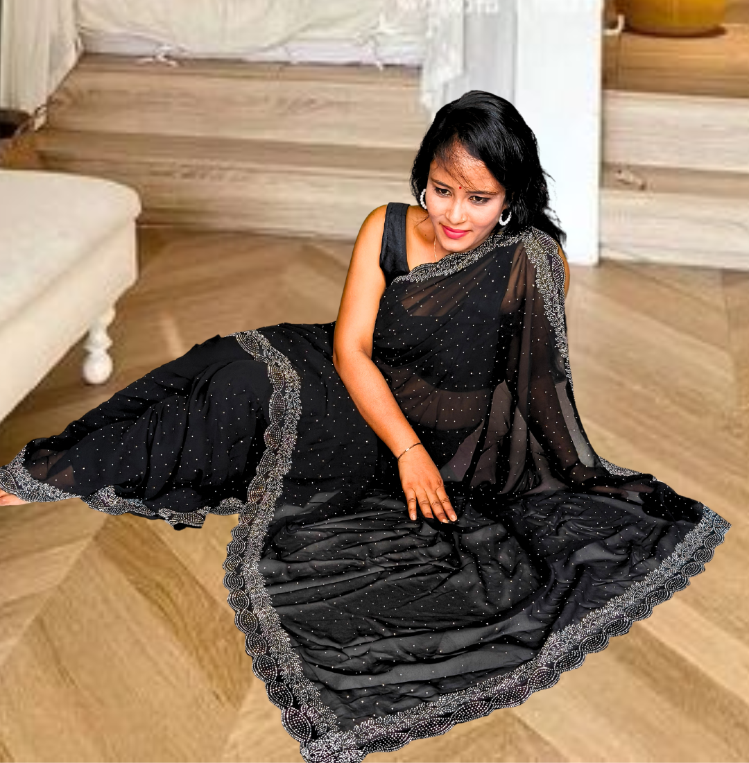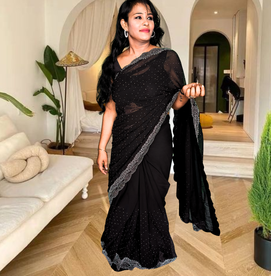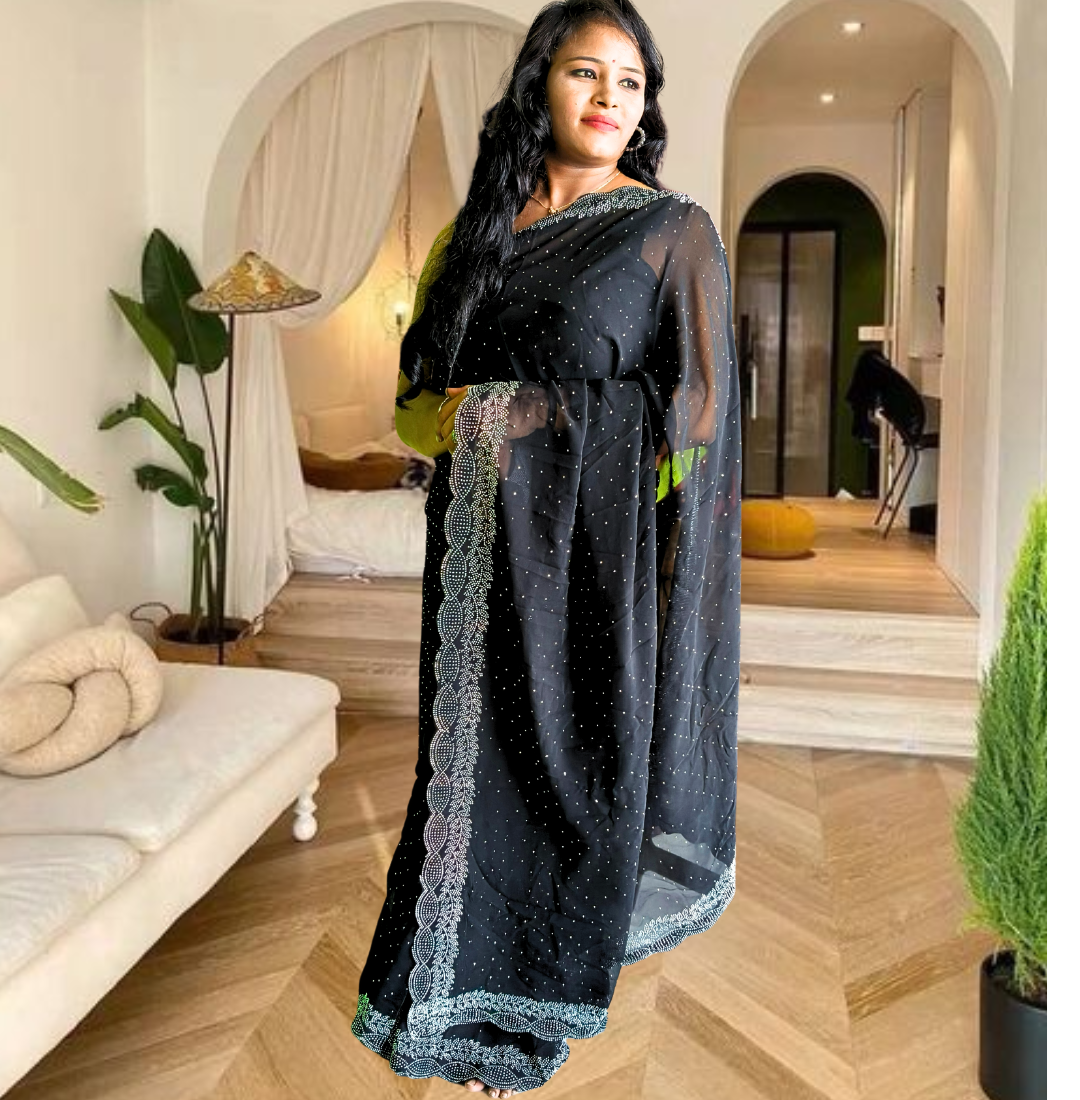 S4s Black Karishma Siroski Stones Lace Georgette Party Wear Saree
