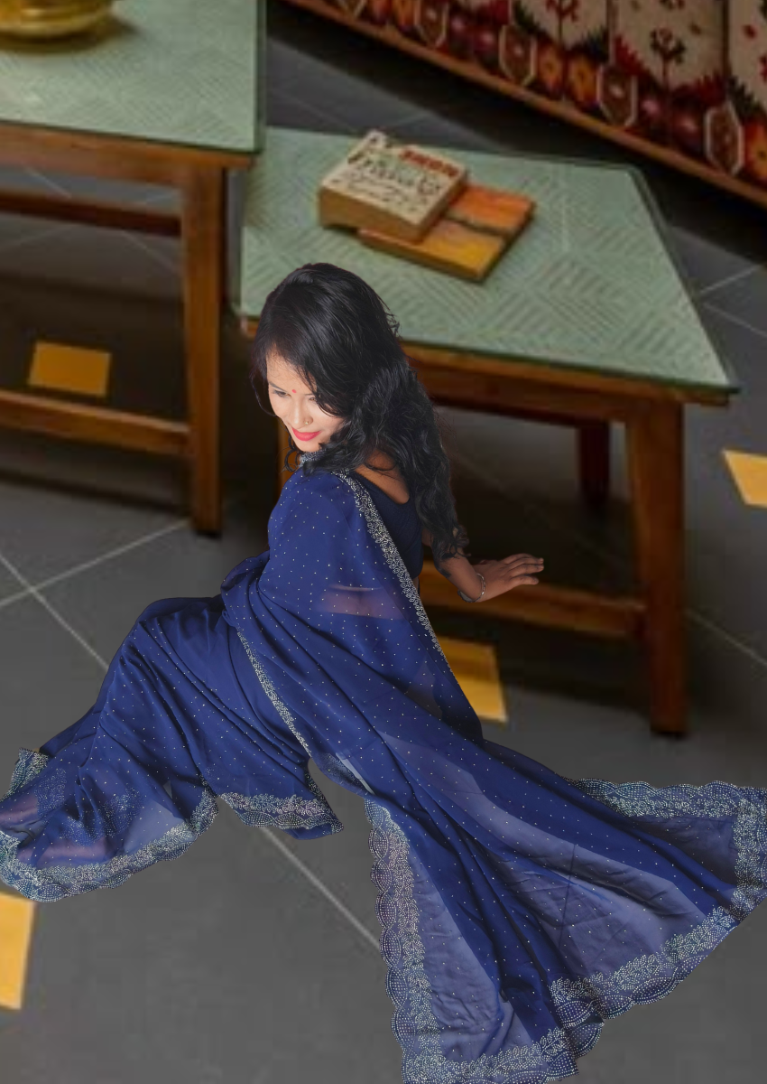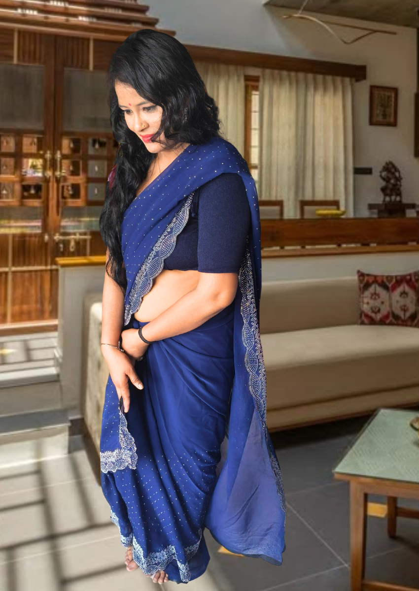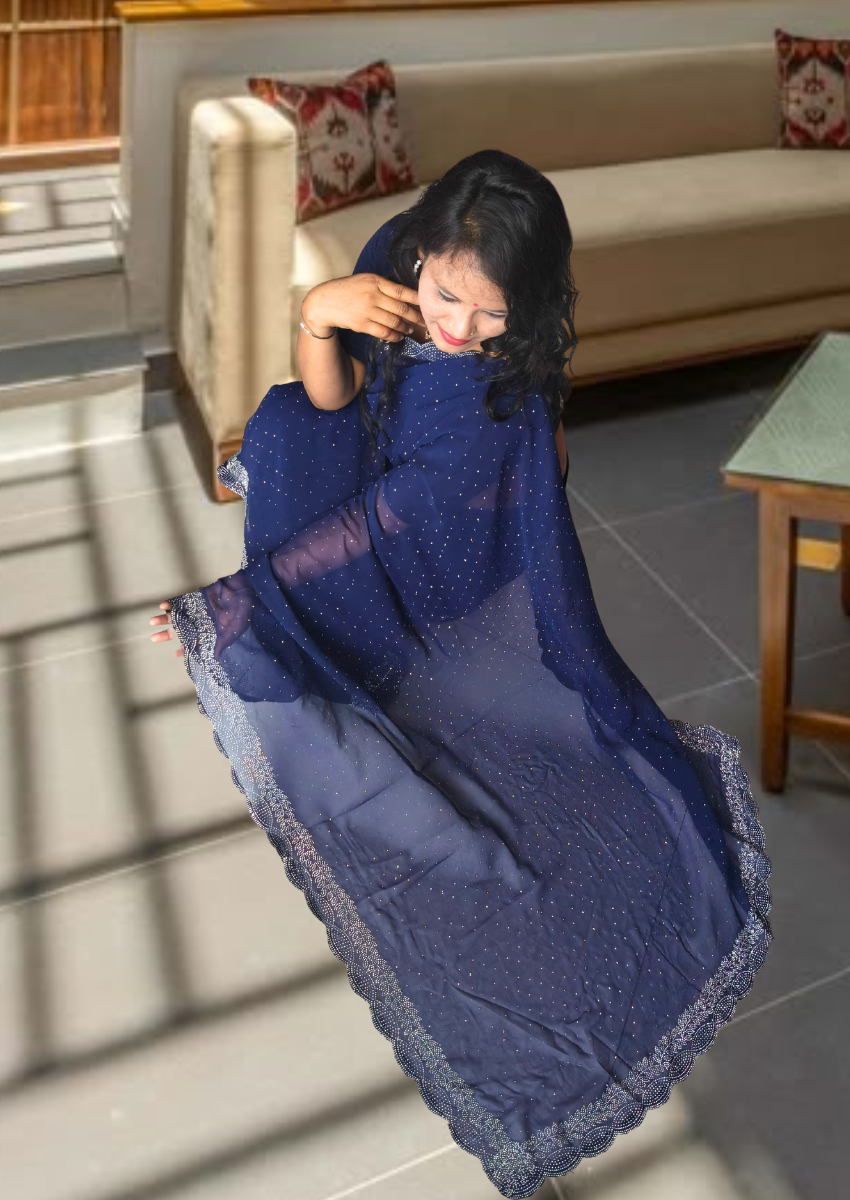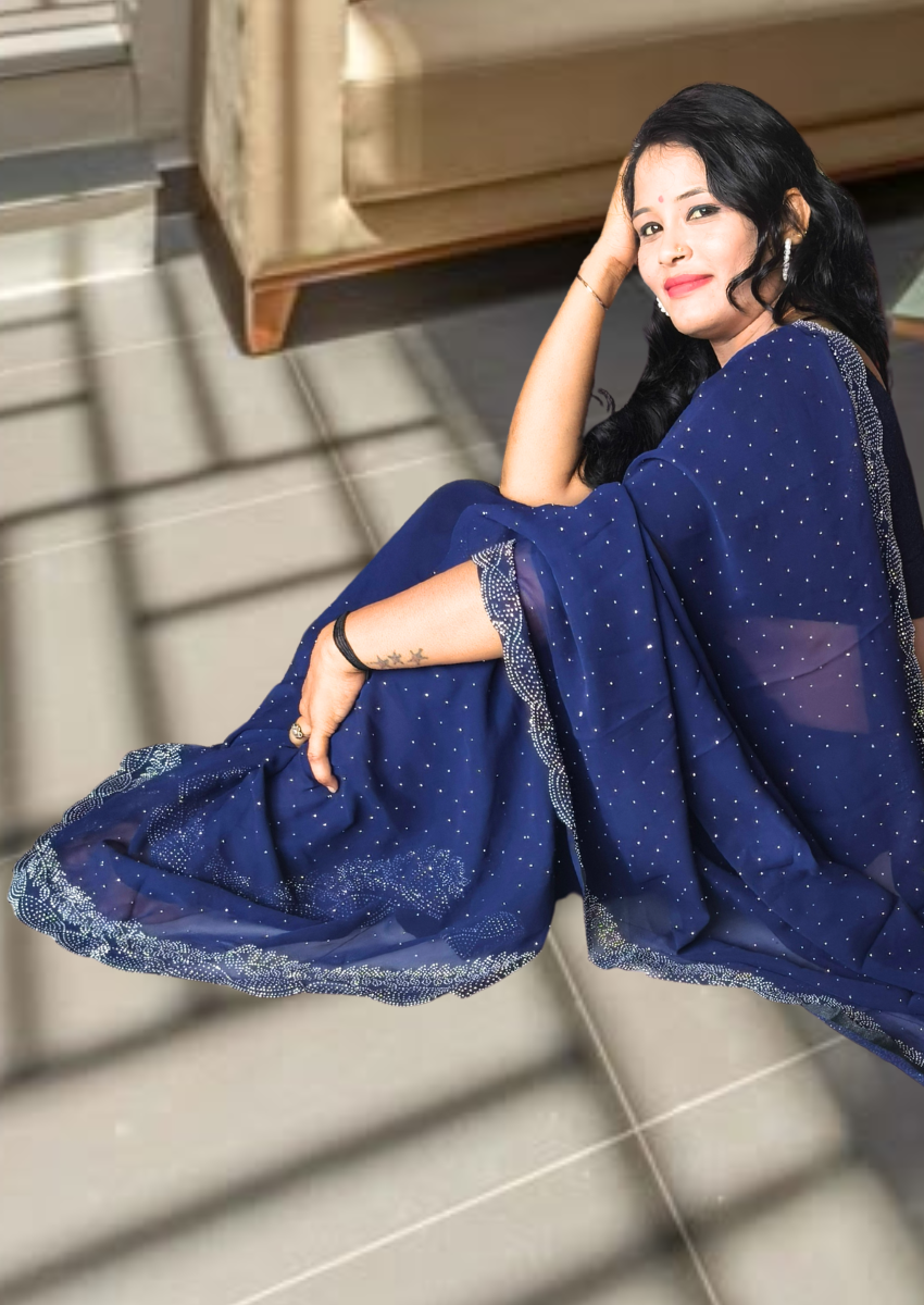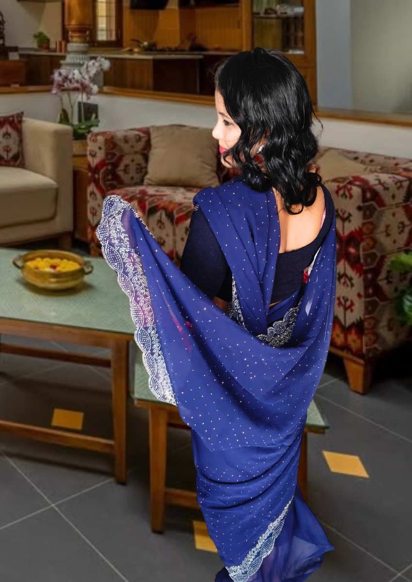 S4s Blue Karishma Siroski Stones Lace Georgette Party Wear Saree
