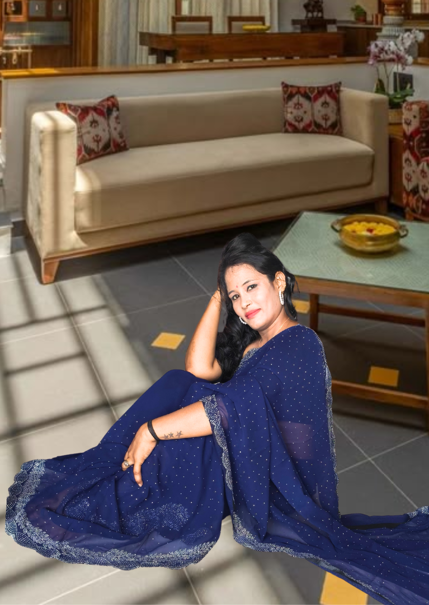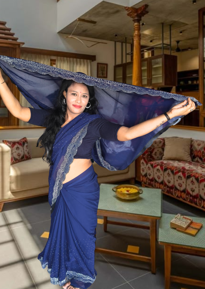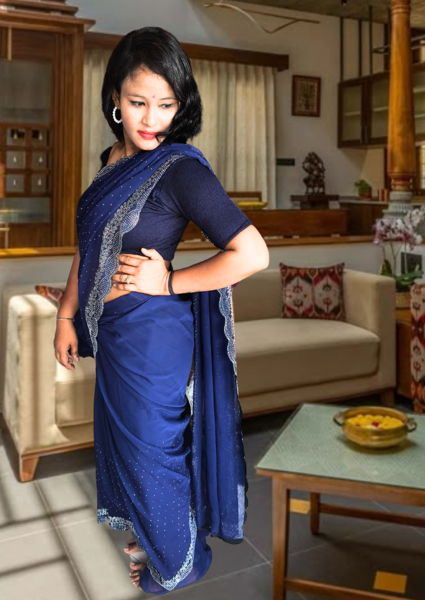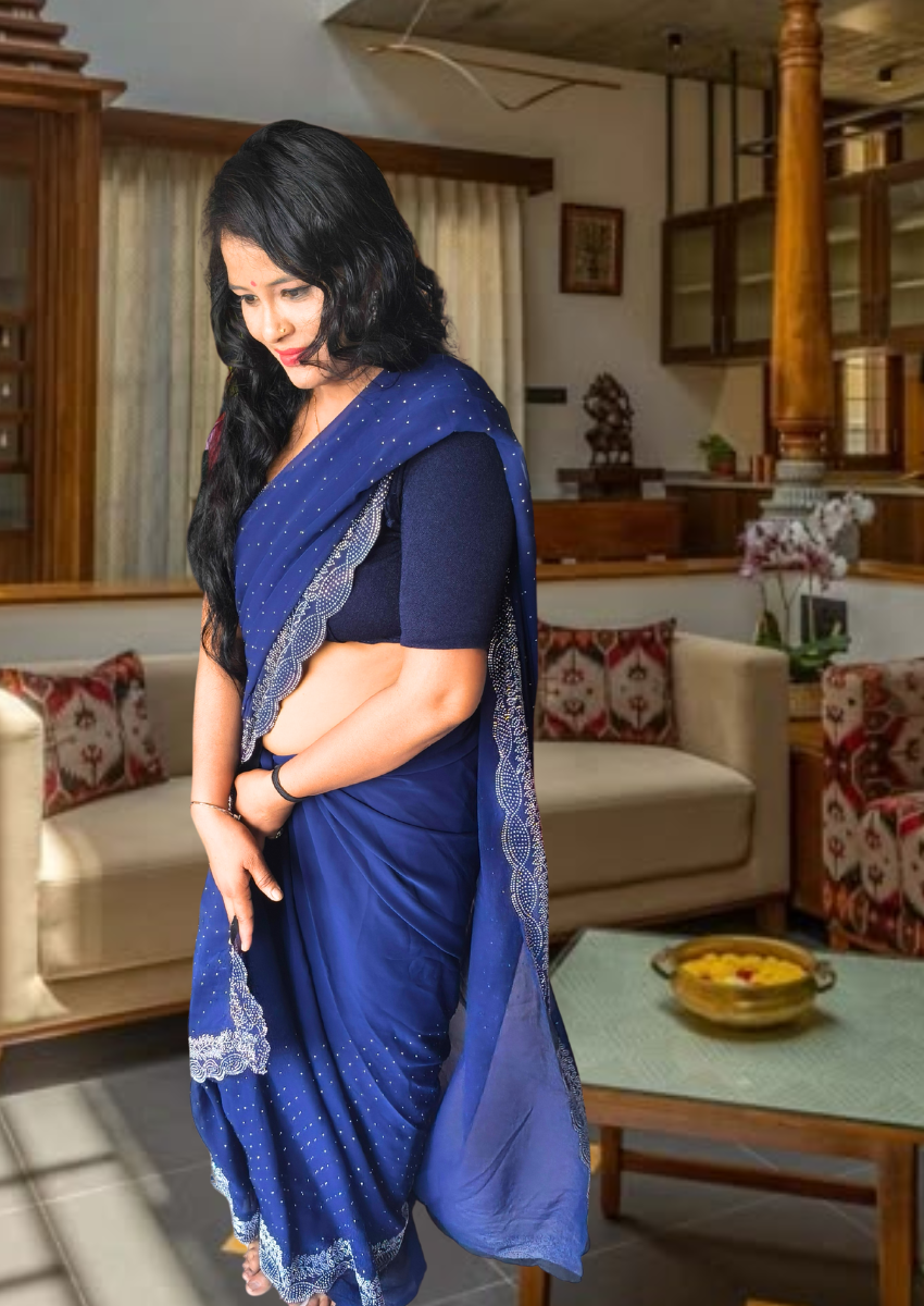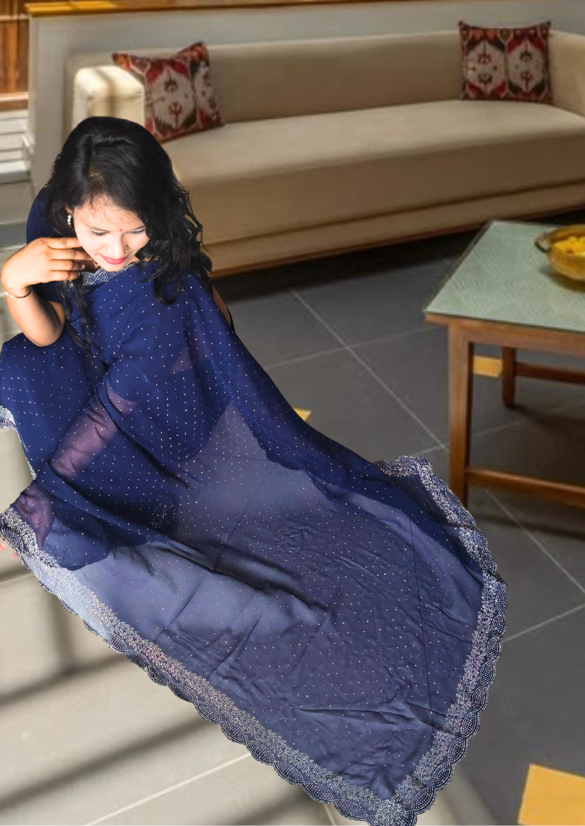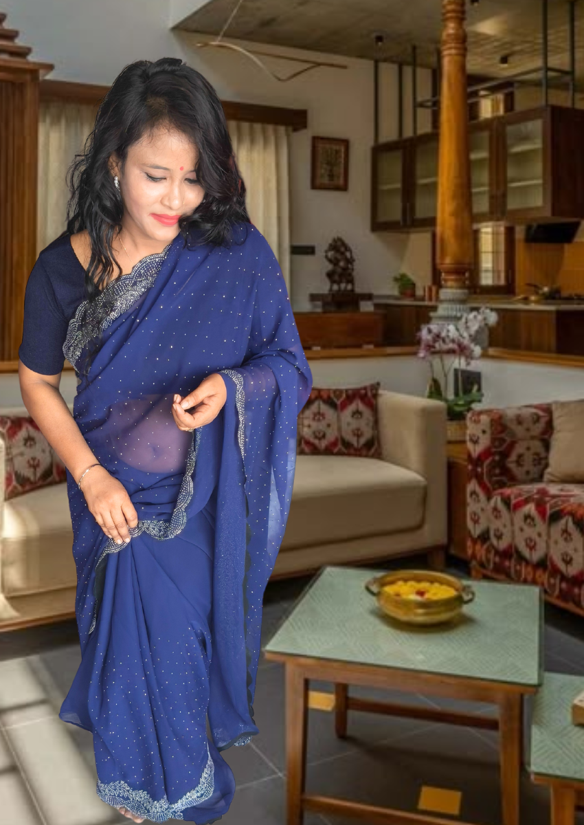 S4s Blue Karishma Siroski Stones Lace Georgette Party Wear Saree