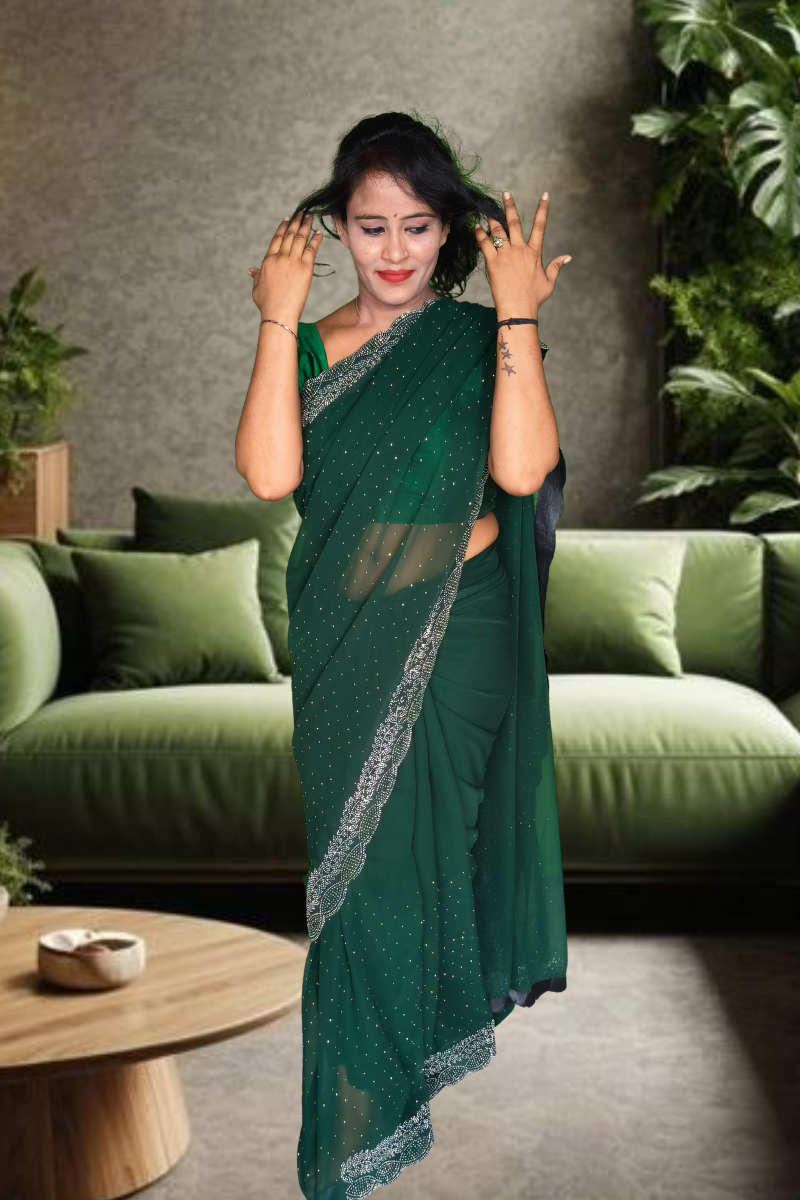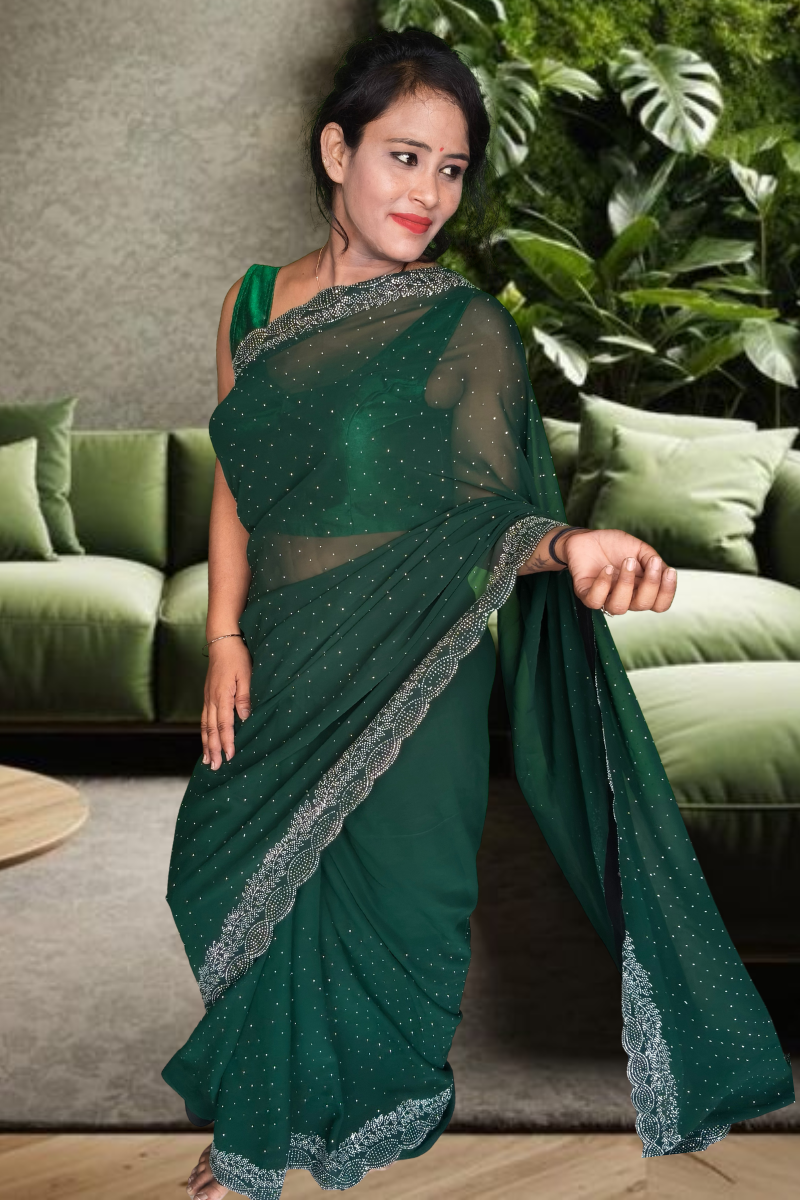 Name : | S4s Green Karishma Siroski Stones Lace Georgette Party Wear Saree |