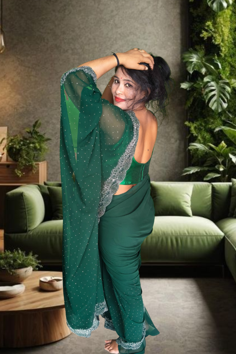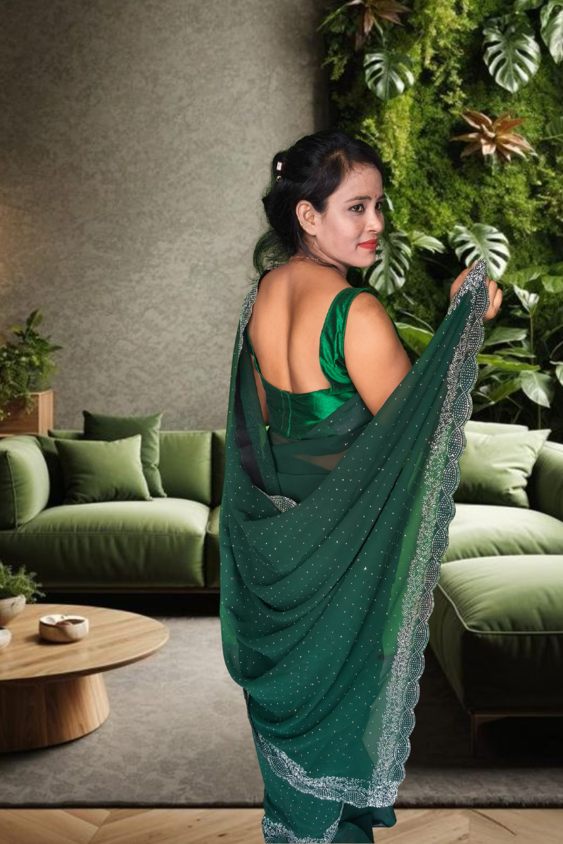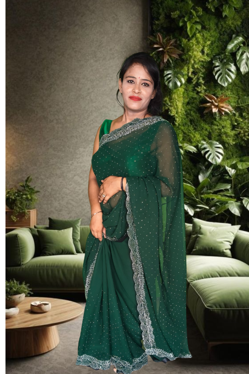 S4s Green Karishma Siroski Stones Lace Georgette Party Wear Saree