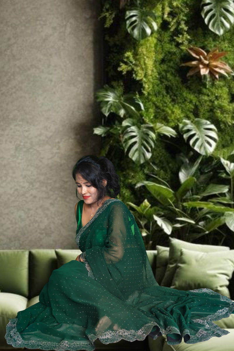 Reviews for S4s Green Karishma Siroski Stones Lace Georgette Party Wear Saree