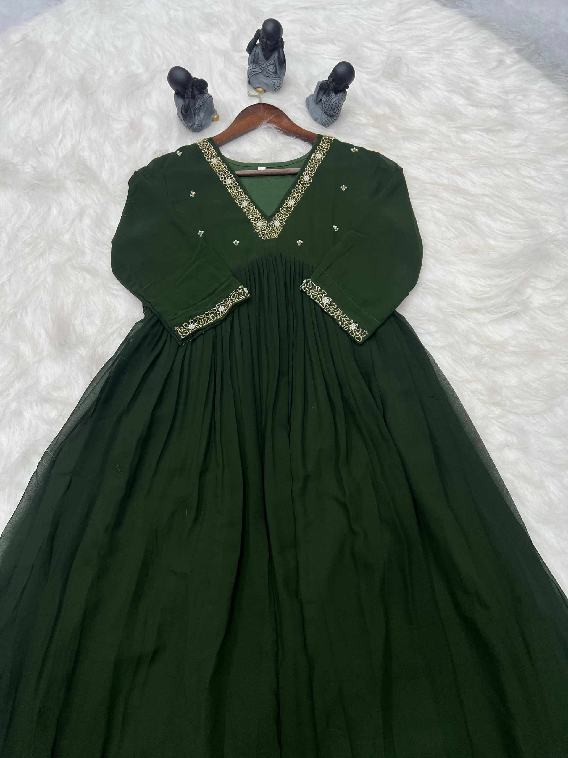 Name : | WM10 GREEN BLOOMING GEORGETTE HANDWORK KURTI |
